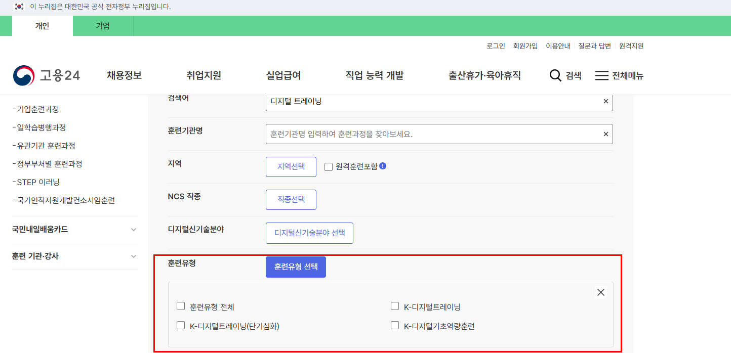 - 기존 HRD-Net 통합: 이전에는 HRD-Net에서 검색했지만, 현재는 고용24에서 통합 제공