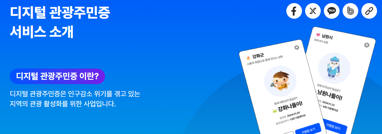 디지털 관광주민증은 특정 지역을 방문하는 관광객이 ‘명예 주민’ 자격을 갖고 다양한 지역 혜택을 누릴 수 있도록 만든 정부 공식 디지털 증명서입니다.