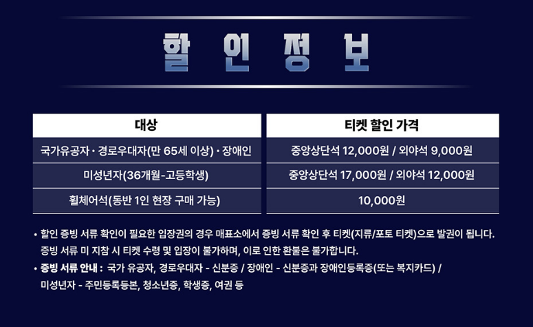 | 휠체어·장애인석 | 10,000원 | 1인 1석 기준 현장 구매 가능 |