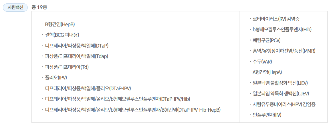 필수예방접종의 접종비용(백신비 및 예방접종 시행비) 전액 지원