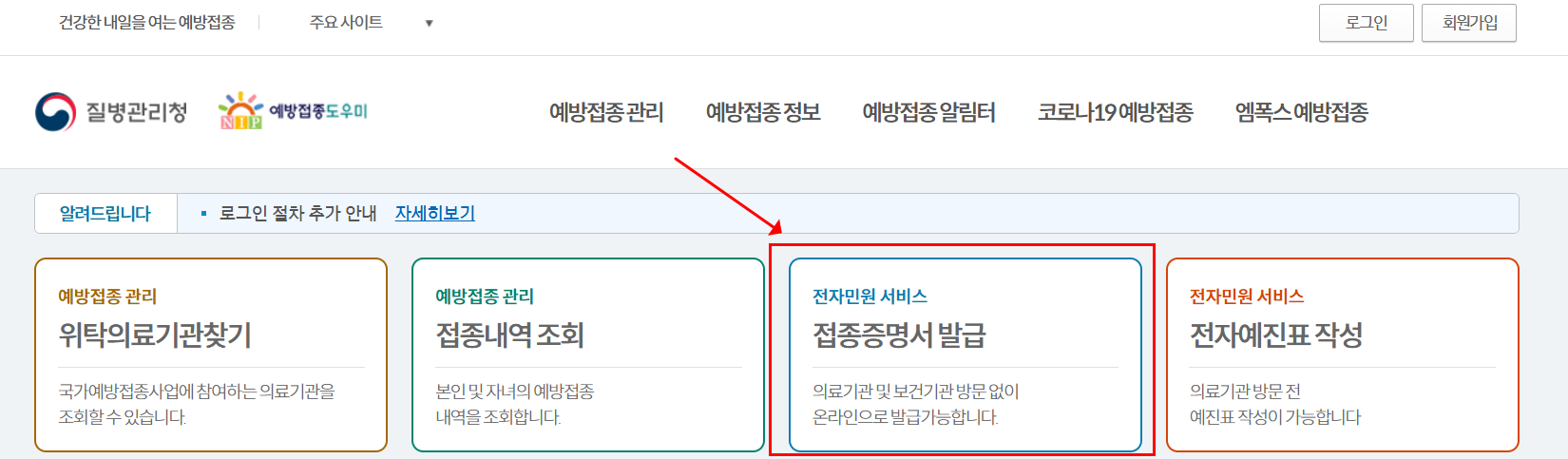 - 예방접종 증명서 발급